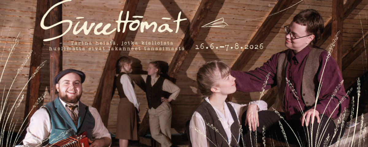 Siveettömät – tarina heistä, jotka kielloista huolimatta eivät lakanneet tanssimasta on rohkea, lämminhenkinen musiikkiteatteriesitys nuoruudesta, valitusta perheestä ja toivosta. Kesällä 2026 Liedon Vanhalinnassa soi pelimannimusiikki, kun Härkätallin vintti muuntautuu laittomien nurkkatanssien estradiksi. Lavalla tanssii ja laulaa kymmenpäinen näyttelijäkaarti livebändin säestämänä.